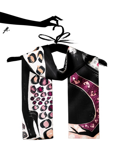The silk scarf “La Petite Robe Noire” by Guerlain and Kuntzel+Deygas. © Guerlain